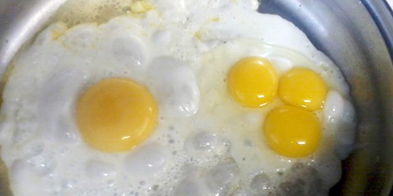 Andrew cracked the egg open yesterday for his breakfast and immediately took a photo to sms to me as I was not at home at the time. His message with the egg photo was: “And you thought double eggs were the bomb”… I gasped with amazement and laughed with joy all at the same time when I saw the photo! You’d never think that fried eggs could ever make anyone so happy, but this really was the “BOMB” for Andrew and I and we just had to share it with you.